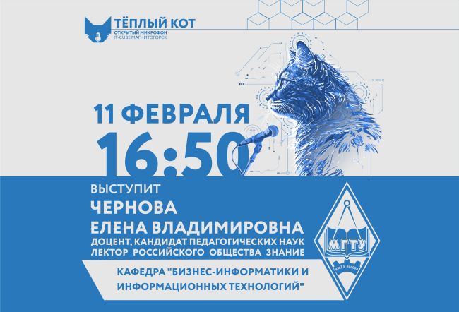Дорогие друзья! Ко Дню российской науки в нашем Центре пройдёт «Теплый кот» в формате открытого микрофона! Это отличная возможность для всех желающих детей пообщаться, поделиться своими мыслями и настроением, а также узнать много нового.