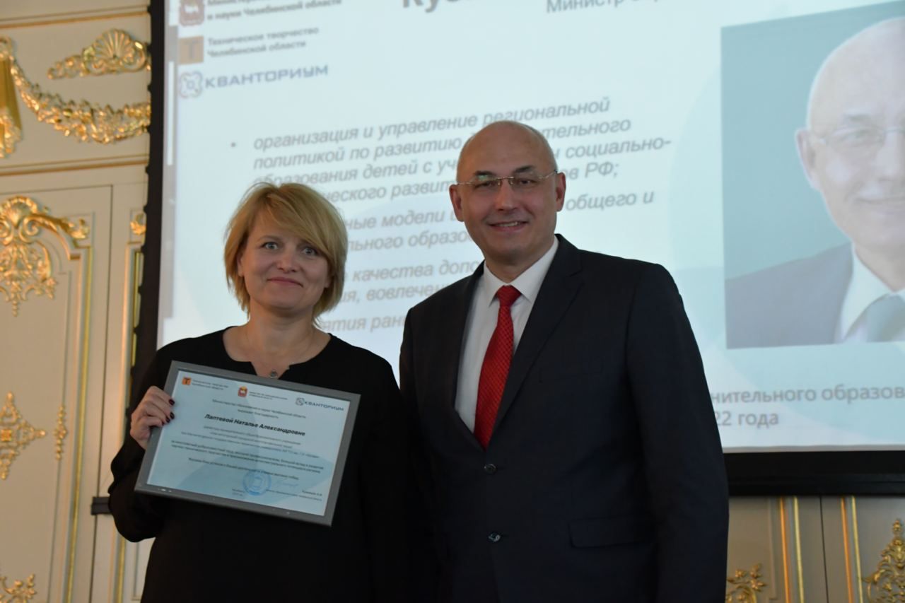 Открыли мероприятие Министр образования и науки Челябинской области Кузнецов А.И. и Заместитель директора по организационно-методическому сопровождению технической направленности Кузнецова И.А.