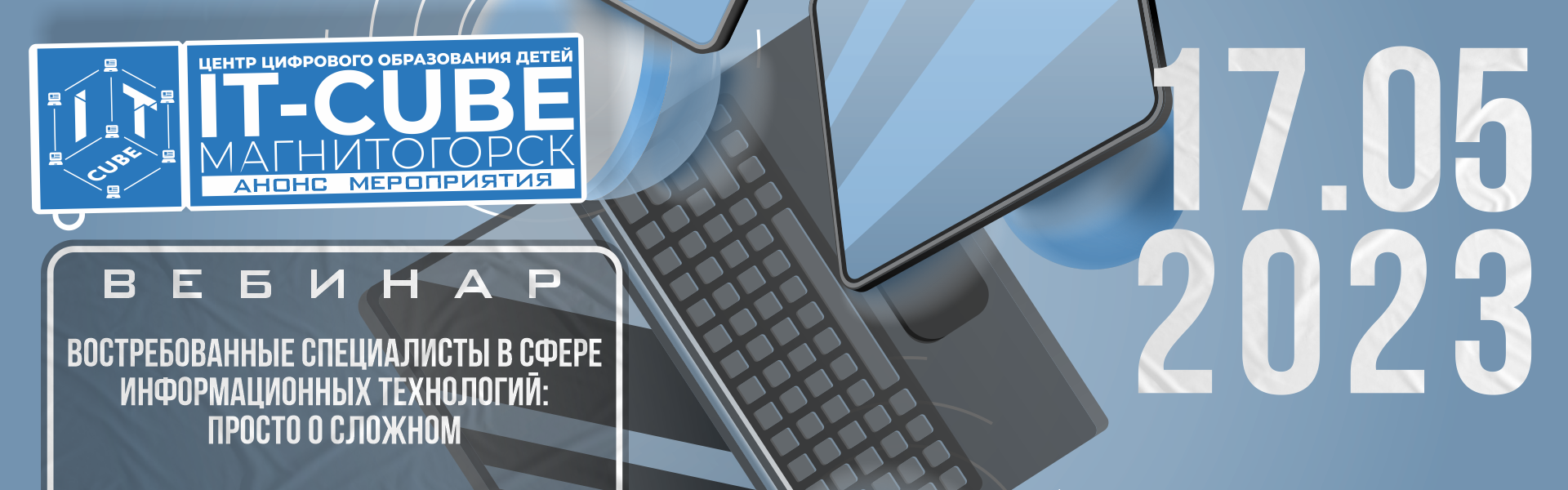 Уже совсем скоро ЦЦОД «IT-куб» г. Магнитогорск совместно с ФГБОУ ВО «МГТУ им. Г.И. Носова» проведет вебинар «Востребованные специалисты в сфере информационных технологий: просто о сложном» с целью профориентации и формирования осознанного выбора будущей профессии детьми, а также выявления запроса государства, экономики и общества на специалистов в области информационных технологий в России.