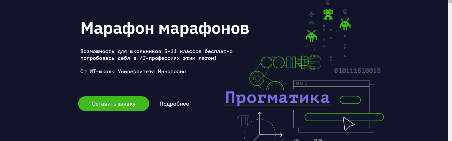 ИТ-школа Университета Иннополис в 2022 году проводит цикл бесплатных просветительских мероприятий для школьников "Марафон марафонов 2022"