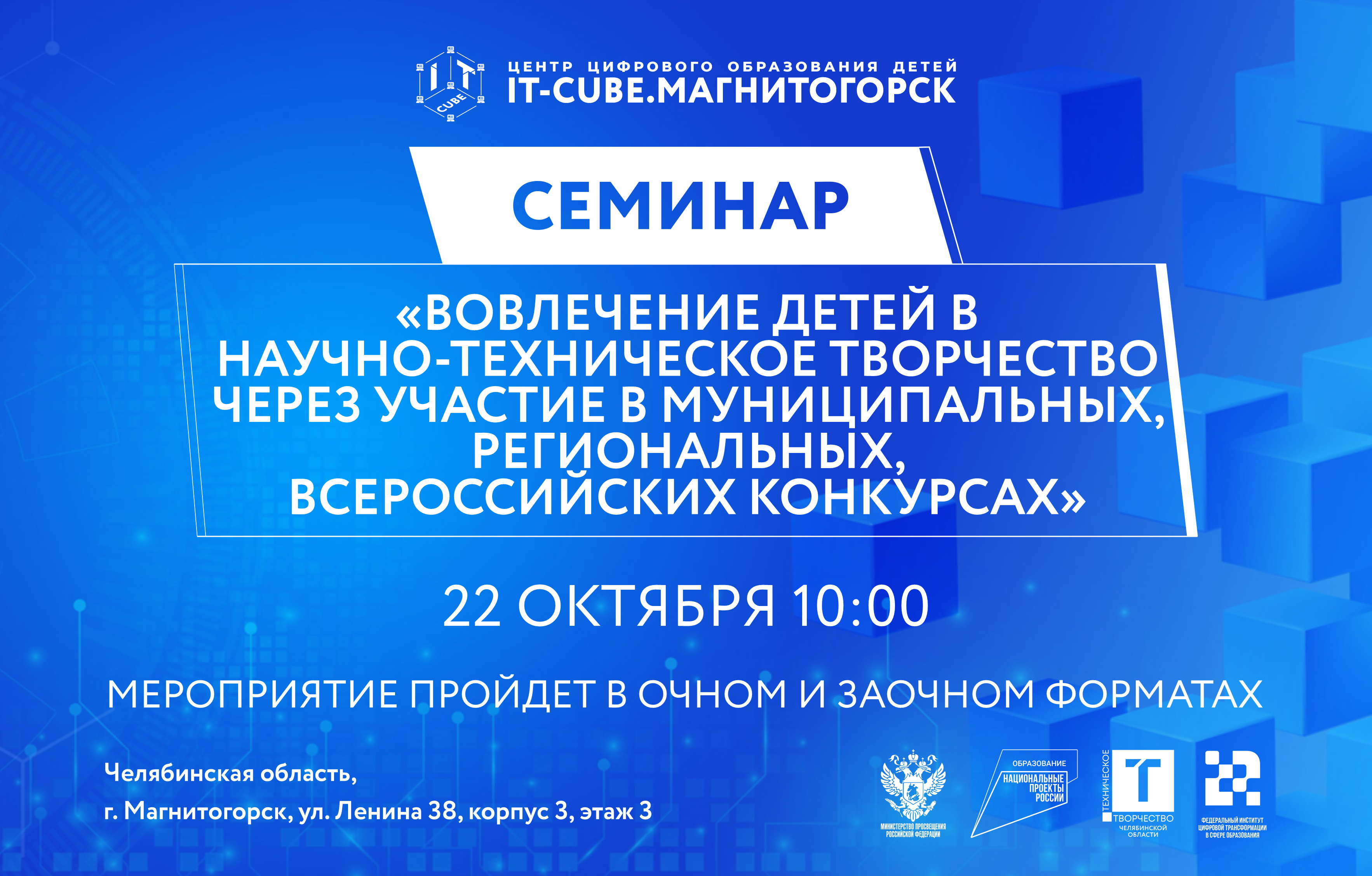 Центр "IT-куб" г. Магнитогорск проведет семинар «Вовлечение детей в научно-техническое творчество через участие в муниципальных, региональных, всероссийских конкурсах».
