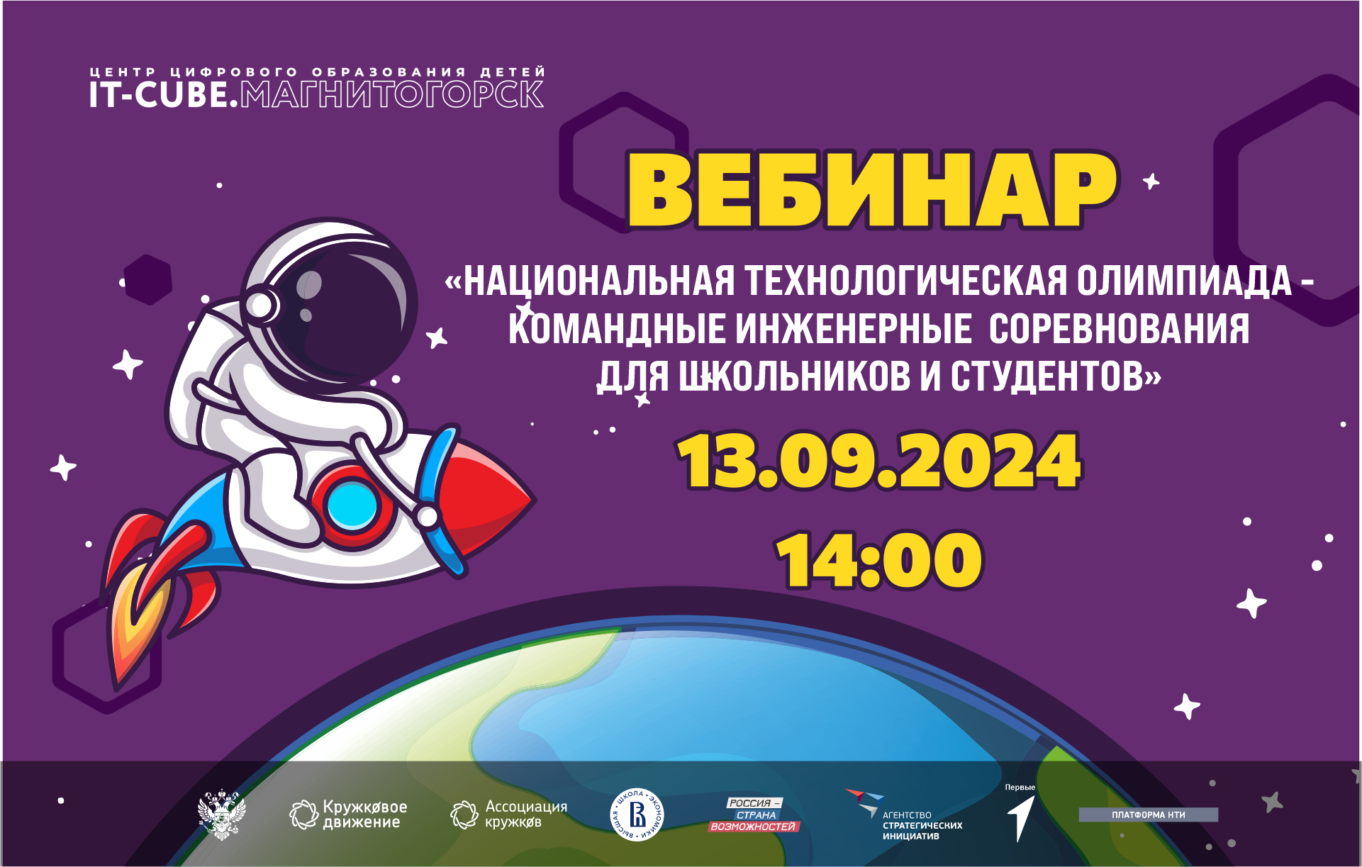 Центр "IT-куб" г. Магнитогорск совместно с проектным офисом НТО проведет вебинар "Национальная технологическая олимпиада - командные инженерные соревнования для школьников и студентов".